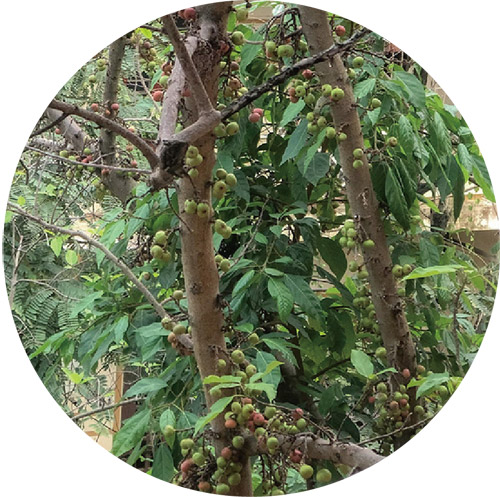 Nhìn vào ảnh thì ta có thể thấy rằng, quả nó có màu xanh, đường kính từ 1 đến 1.5cm. Quả màu xanh này hình như rất nổi tiếng ở Việt Nam và có thể ăn được.