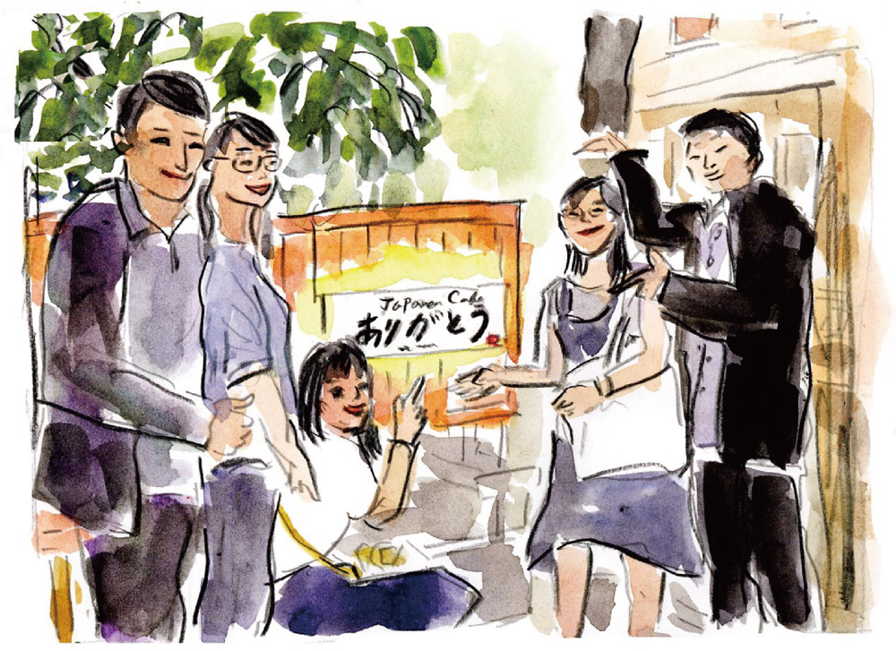 Sẽ có những lúc có nhóm khách trẻ đến quán. Khi đó, họ sẽ phát hiện ra nhành hoa bên cạnh biển quảng cáo của Arigatou Cafe, rồi sẽ ghé sát mặt xung quan biển hiệu cà phê nho nhỏ và chụp ảnh chăng? Những người phụ nữ đẹp, có khuôn mặt tươi như hoa. Chỉ cần khi những vị khách ghé vào thăm quán và phát hiện ra ở cửa ra vào có 1 nhành hoa đó thôi thì tôi cũng đã rất cảm động rồi.