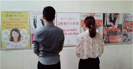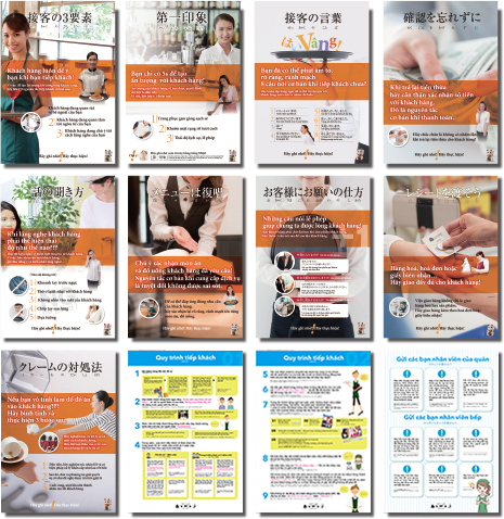 Sử dụng poster và học căn bản về đón tiếp khách hàng.